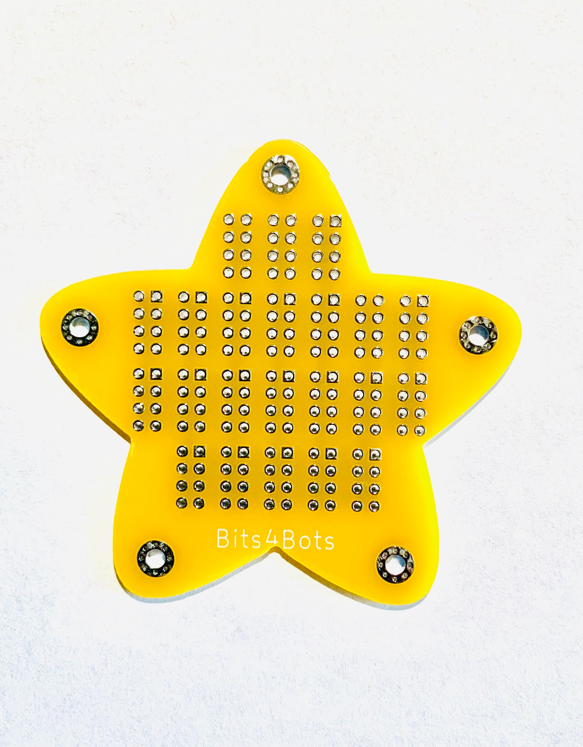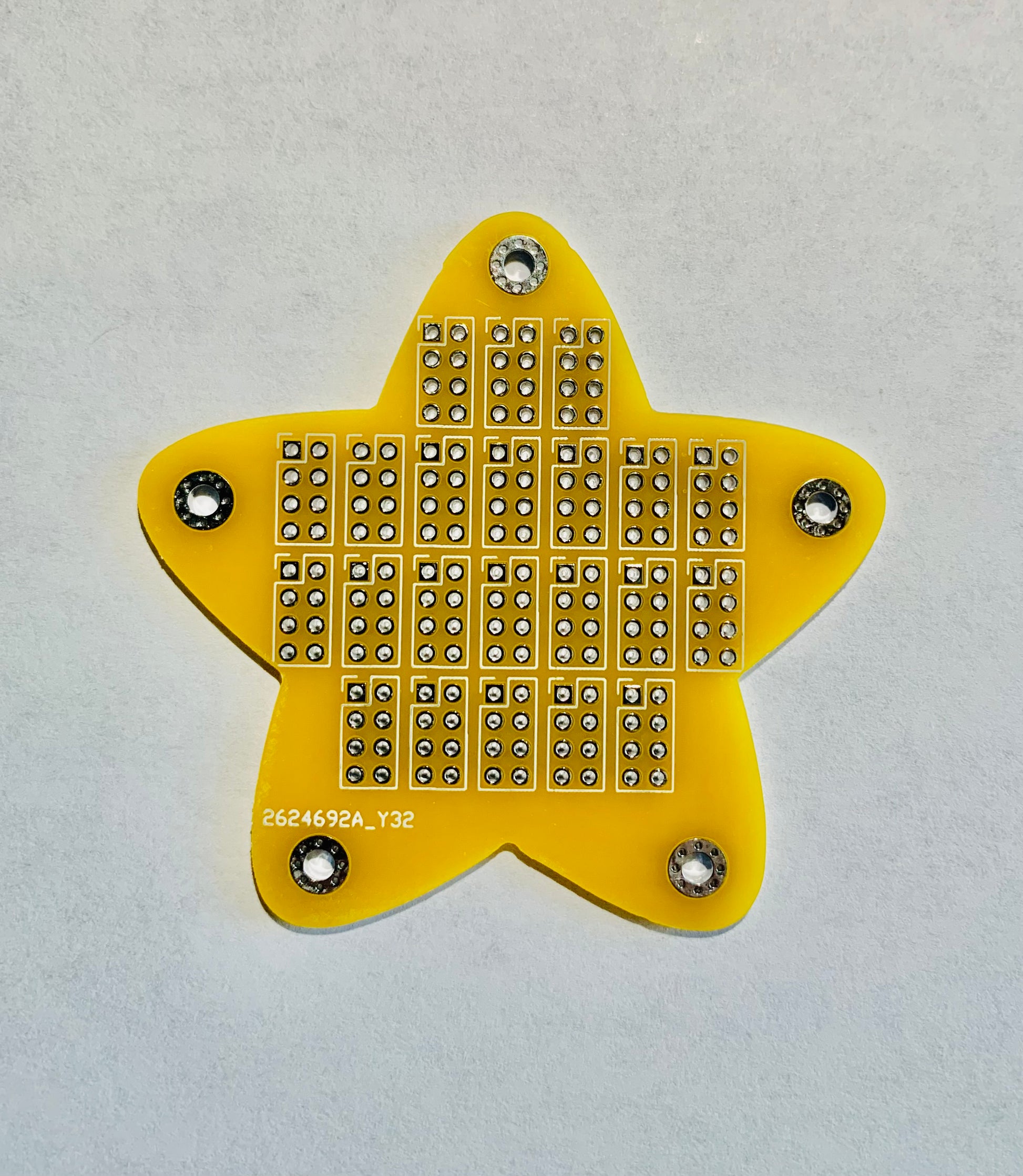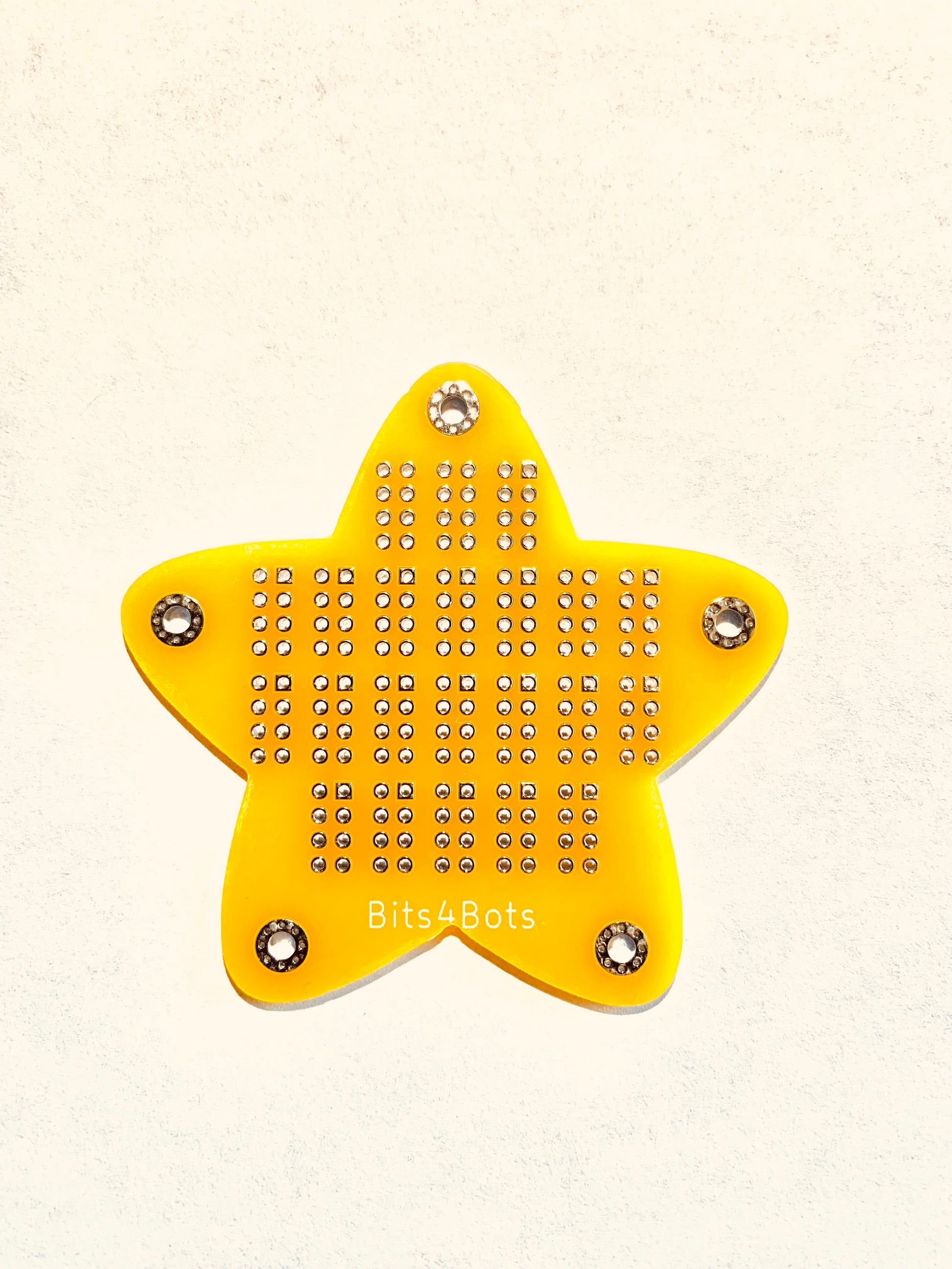 Placa de soldadura perforada en forma de estrella. 5 agujeros de montaje. 132 puntos de unión para una amplia gama de componentes electrónicos y DIP.