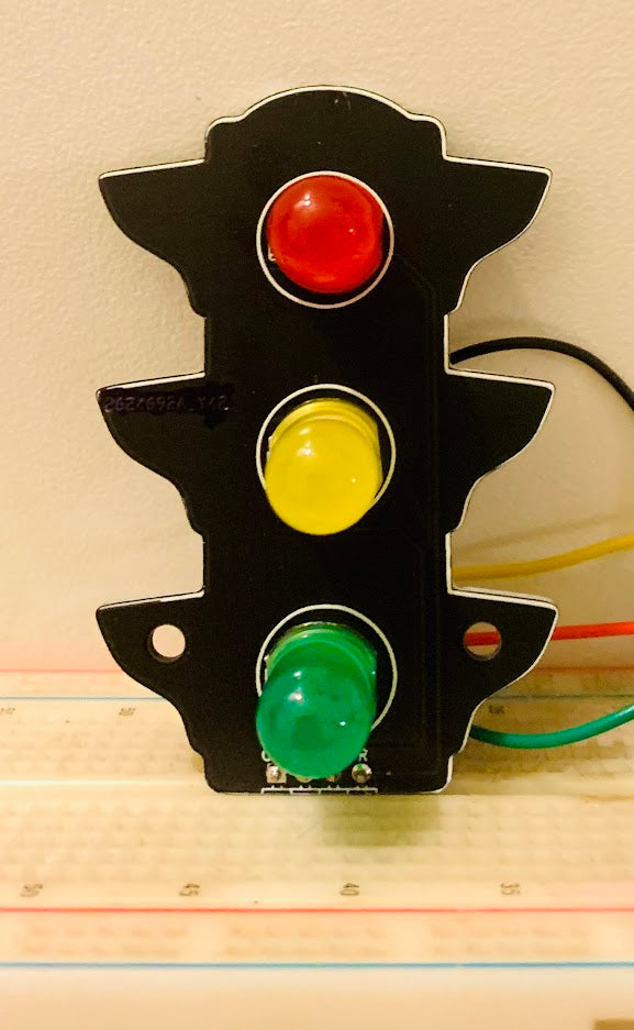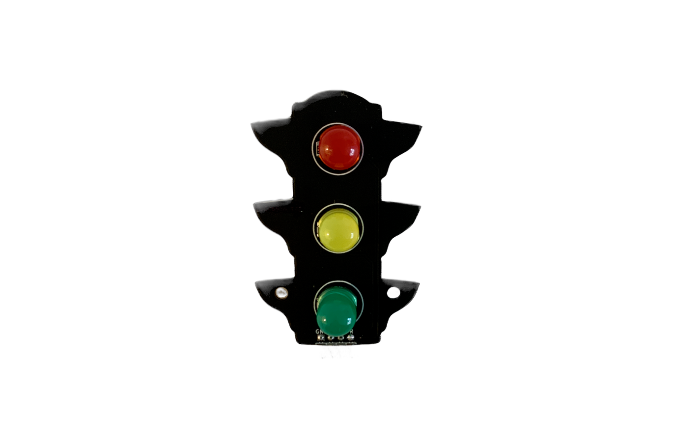 Traffic light shaped printed circuit board module. Great for Arduino, micro:bit, Raspberry Pi, and other development boards.